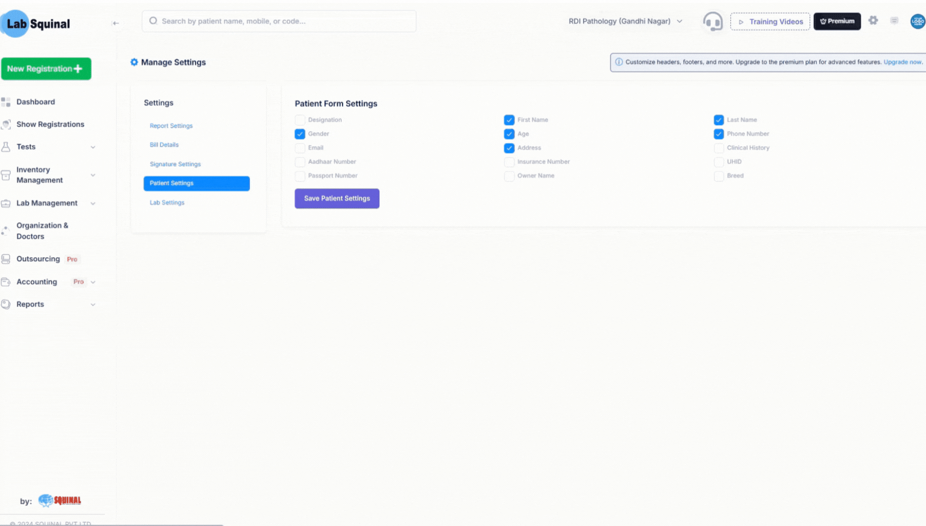 A flexible and intelligent system designed to speed up patient onboarding while adapting to your lab’s workflow. Enable or disable fields like age, gender, address, referral, etc., based on your lab’s needs.